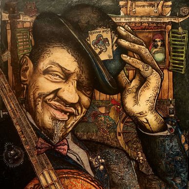 This classic blues song, penned by singer/songwriter Slim Harpo in 1957, has been covered by many of the Blues greats (including The Rolling Stones and Pink Floyd). French artist Lionel Dumas creates his own textured take on the song's sinful main character.