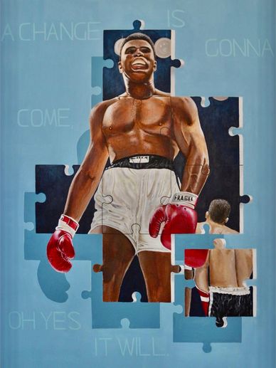 Portuguese graffiti/mural artist MR KAS uses the iconic image of pugilist and civil rights activist Mohammad Ali to contextualize the call to action lyric from Sam Cooke's song "A Change Is Gonna Come"